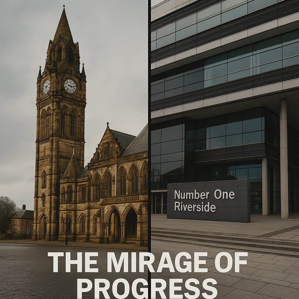 When Rochdale Council shifted its operations to Number One Riverside, the move was framed as a leap into the modern era — glass, chrome, and open-plan governance. Yet the relocation also symbolised something deeper: the replacement of public character with corporate control.